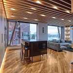 Видовая семейная квартира с красивой отделкой в новом ЖК "Кленовый Дом". Панорамные окна в пол с видом на Москву-реку, памятник Петру I, Третьяковскую галерею, парк Музеон. Планировка: кухня-гостиная, две спальные комнаты с собственными ванными, гардеробная. Ремонт выполнен с применением натуральных отделочных материалов (ценные породы дерева, камень). Установлен биокамин, а также встроен аквариум на 1300 литров. Квартира меблирована и полностью оснащена бытовой техникой от ведущих производителей Италии и Германии. За дополнительную стоимость можно приобрести 2 машиноместа в подземном паркинге.