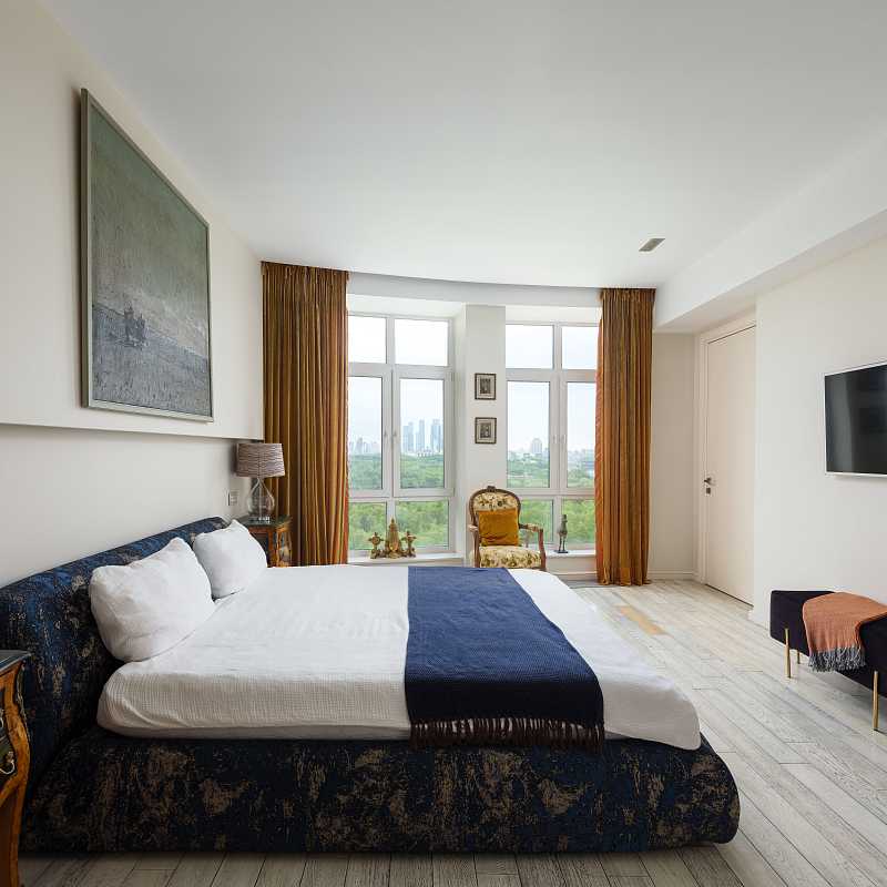 Отделка выполнена с использованием качественных дорогостоящих материалов. Квартира меблирована, оборудована современной бытовой техникой и готова к проживанию.Функциональная планировка включает в себя кухню-столовую-гостиную с камином, мастер спальню с ванной и гардеробной комнатами, 2 спальни, гостевой санузел. Из панорамных окон квартиры открываются виды на Москву. В комплексе огороженная и охраняемая территория с системой контроля доступа и видеонаблюдения, детские площадки. Подземный и гостевой паркинги. Удобная транспортная доступность и развитая инфраструктура района сделают проживание в квартире еще более комфортным.