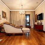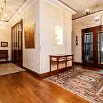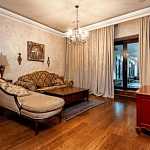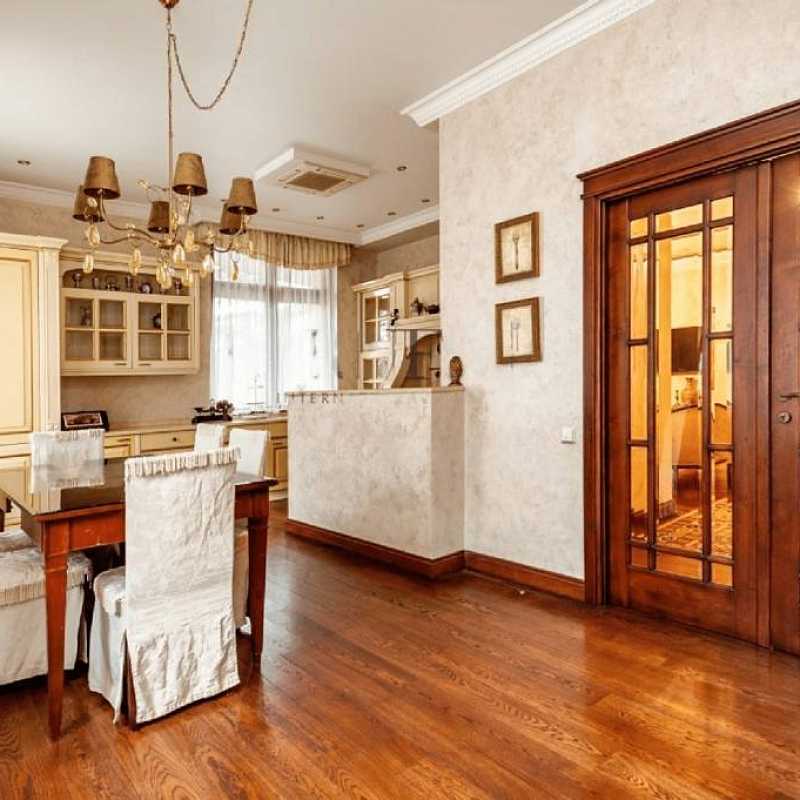 Предлагается 5-ти комнатная квартира общей площадью 335 кв.м в ЖК "Диамант". Ремонт выполнен в современном классическом стиле с применением экологически чистых отделочных материалов. Высокие потолки 3, 3 м и большая площадь остекления добавляют комнатам простора и света. Из окон открывается приятный вид на тихий двор. Функциональная планировка: гостиная 150 кв.м с панорамным остеклением, кухня-столовая, три спальни, одна из которых со своей гардеробной, кабинет, гардеробная, два совмещенных санузла и один гостевой, постирочная, прихожая, просторная терраса с зимним садом, на котором высажены деревья, кустарники, цветы, выполнен ландшафтный дизайн, организована зона барбекю. Огороженная и охраняемая территория. За квартирой закреплено 1 машиноместо в подземном паркинге.