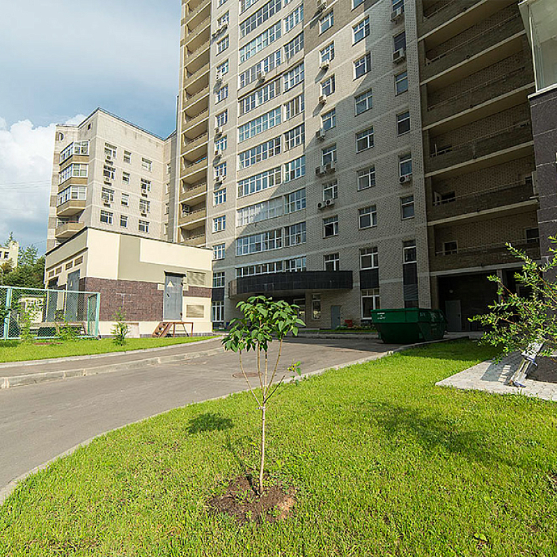 Фасад жилого комплекса оформлен качественными каменными плитами. Это придает зданию презентабельности и солидности. Архитектурный ансамбль выполнен в современном стиле "новый конструктивизм". Входная группа в ЖК отделана по индивидуальному дизайнерскому проекту. ЖК находится под видеонаблюдением. Установлена охранная сигнализация и домофон. В здании реализованы современные инженерные решения: скоростные бесшумные лифты и система вентиляции. В подземной части объекта есть подземный паркинг на 77 авто мест. В холодное время года он отапливается.