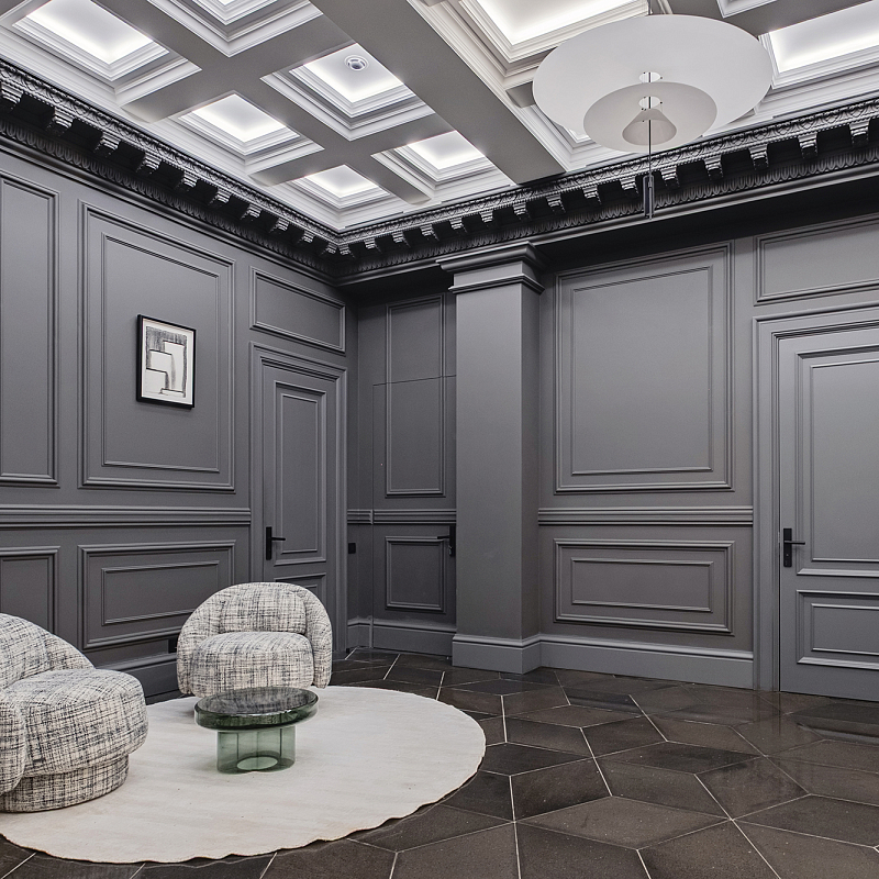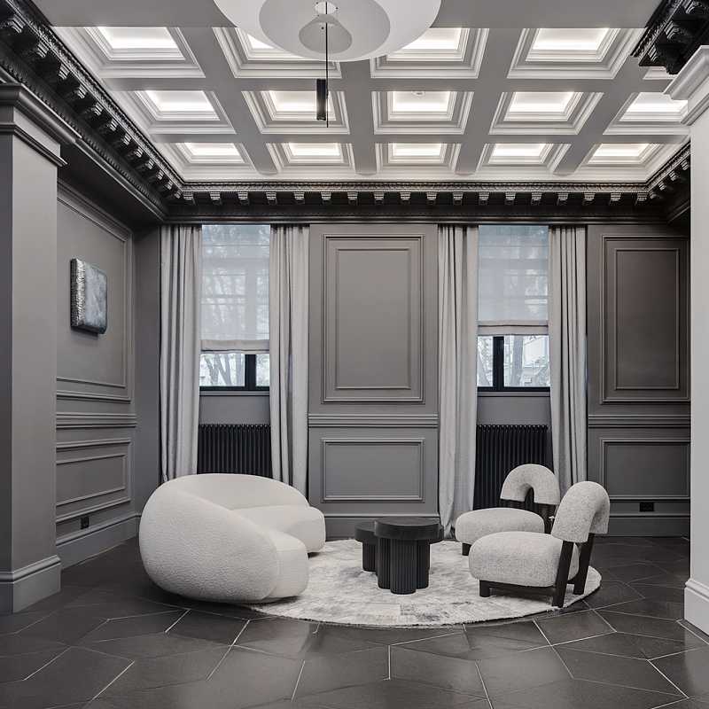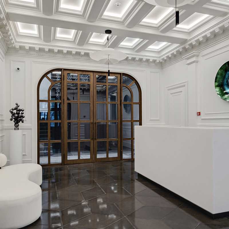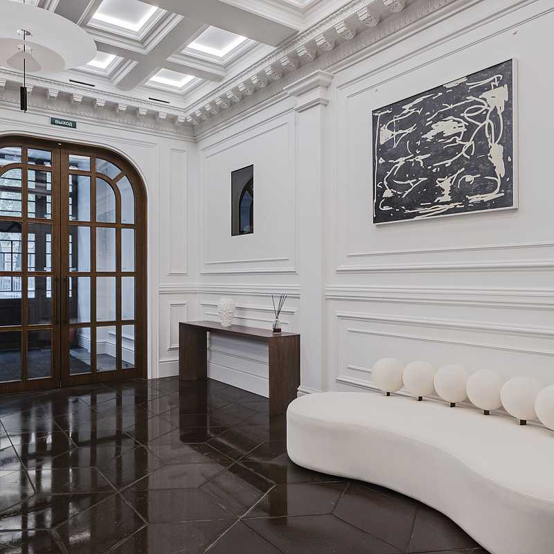 "Хлебный, 19" - это камерный особняк на 13 квартир в тихом переулке между Патриаршими прудами и Кремлём. Полностью реконструированное здание начала XX, построенное по проекту известного архитектора Ольгерда Пиотровича в архитектуре неоклассицизма. Передовая инженерия: приточно-вытяжная вентиляция WOLF, индивидуальный климат-контроль Trox в каждой комнате, радиаторы Zehnder, дизайнерский лифт с кованными элементами ThyssenKrupp.Лобби с мрамором, гранитом, натуральным деревом и высокими потолками перекликается с изысканным фасадом. Консьерж-сервис и услуга valet parking отвечают за комфорт жителей дома на каждом шагу, а их безопасность обеспечивают охрана и видеонаблюдение 24/7.