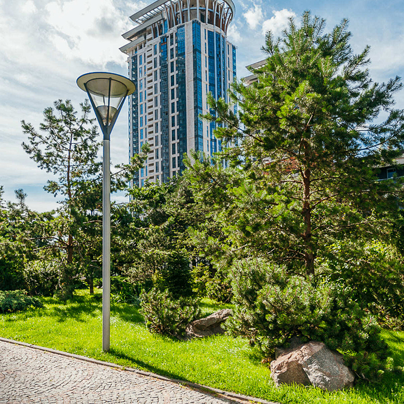 | Территория | Внутренняя территория с ландшафтным дизайном находится под круглосуточной охраной. Оборудованы зоны отдыха, детские и спортивные площадки. |