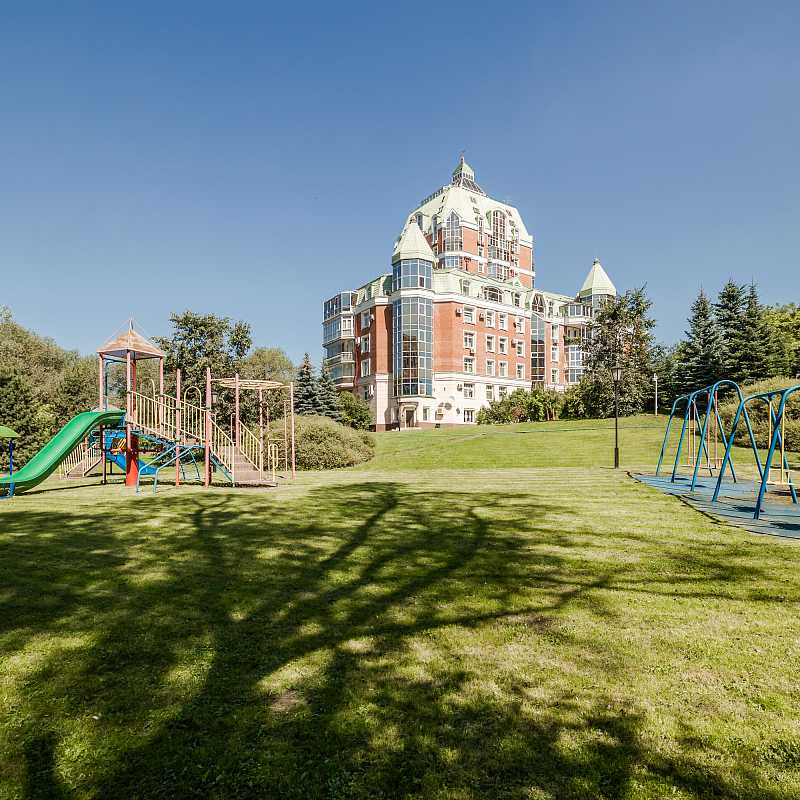 Придомовая территория огорожена и благоустроена: разбиты цветники и клумбы, выполнено озеленение, построена детская игровая площадка. Безопасность жильцов обеспечивается собственной службой охраны, которая работает в круглосуточном режиме, по периметру функционируют система видеонаблюдения. Для удобства автовладельцев в комплексе оборудован многоуровневый паркинг. В ЖК работает своя служба сервиса и ремонта. Внутренняя инфраструктура отлично развита: теннисные корты, фитнесс-клуб, сауна, футбольное поле, детские игровые площадки. Жилой комплекс оснащен самыми современными инженерными технологиями.