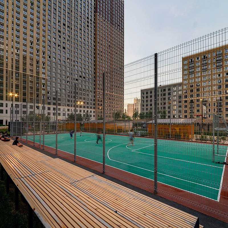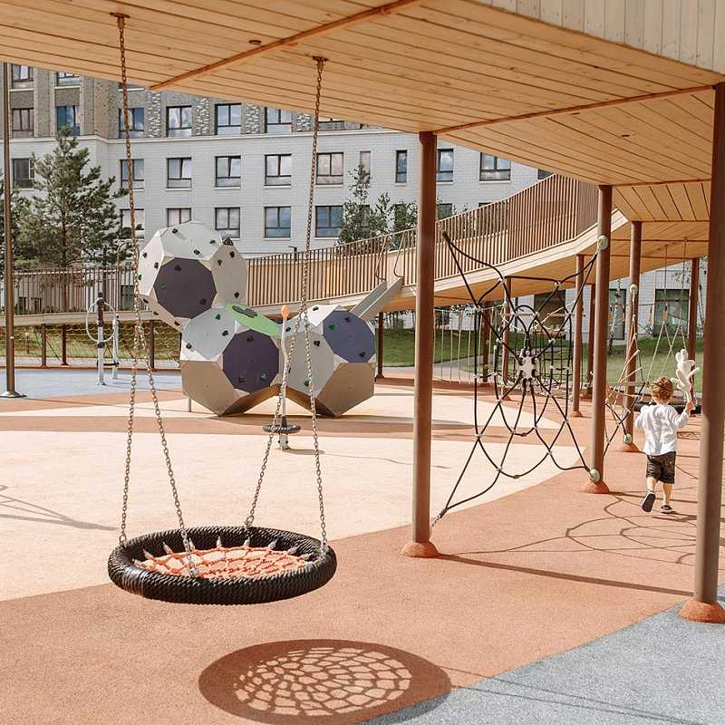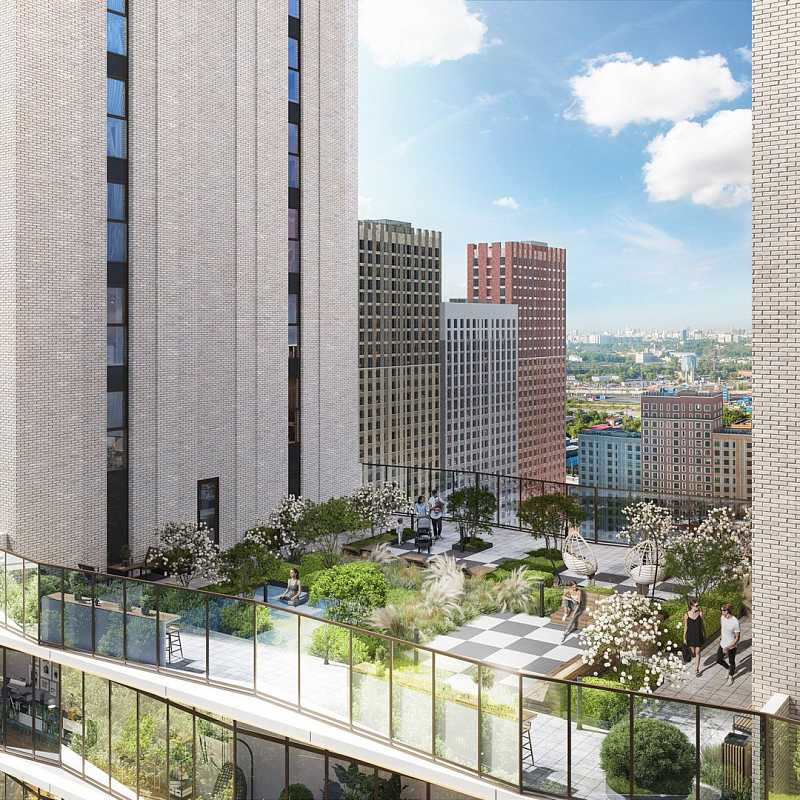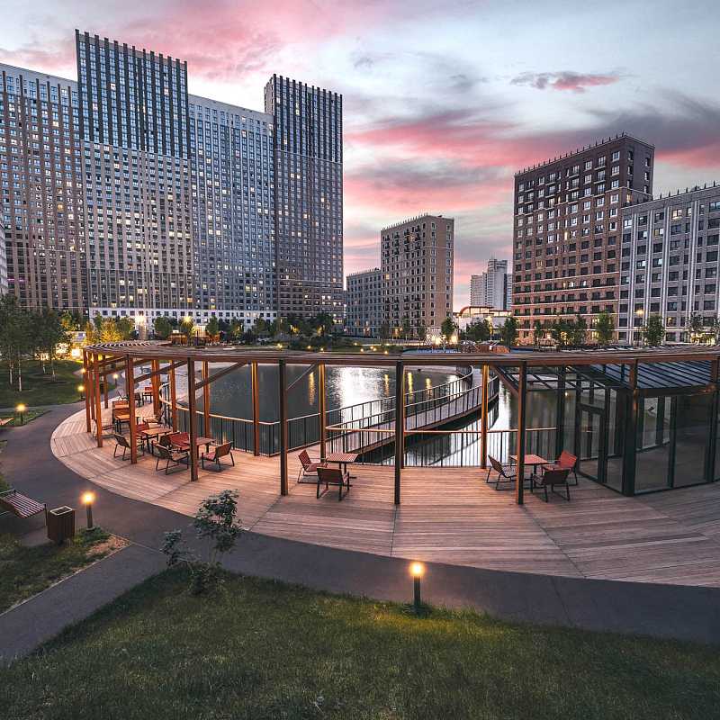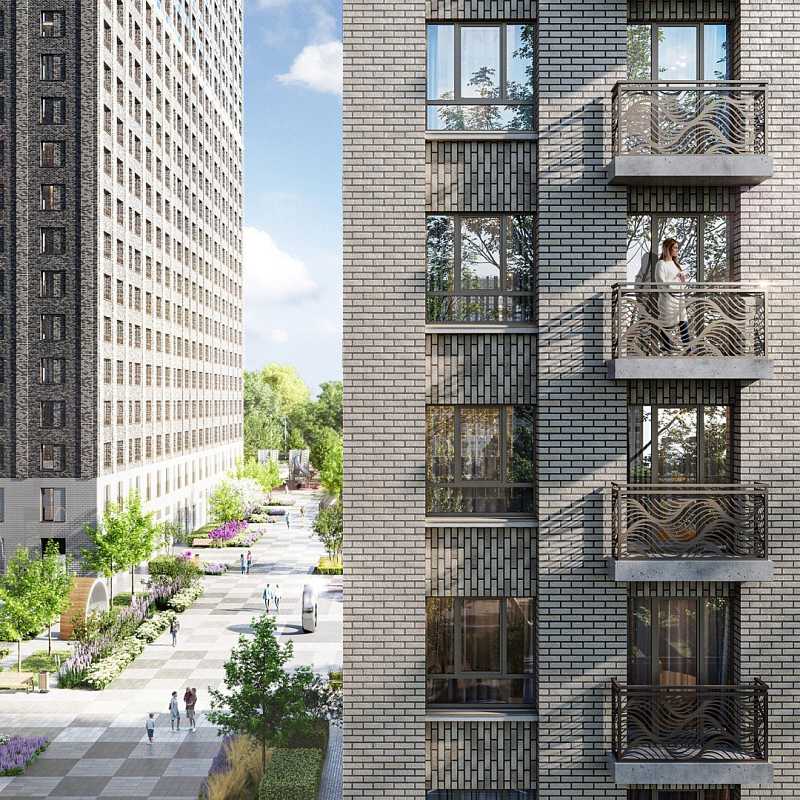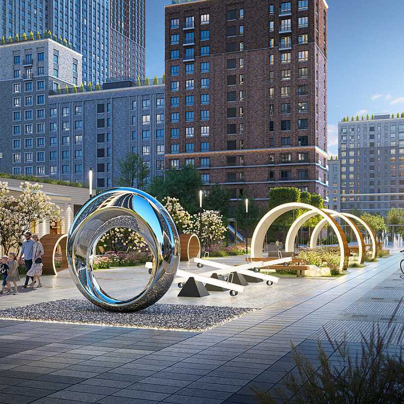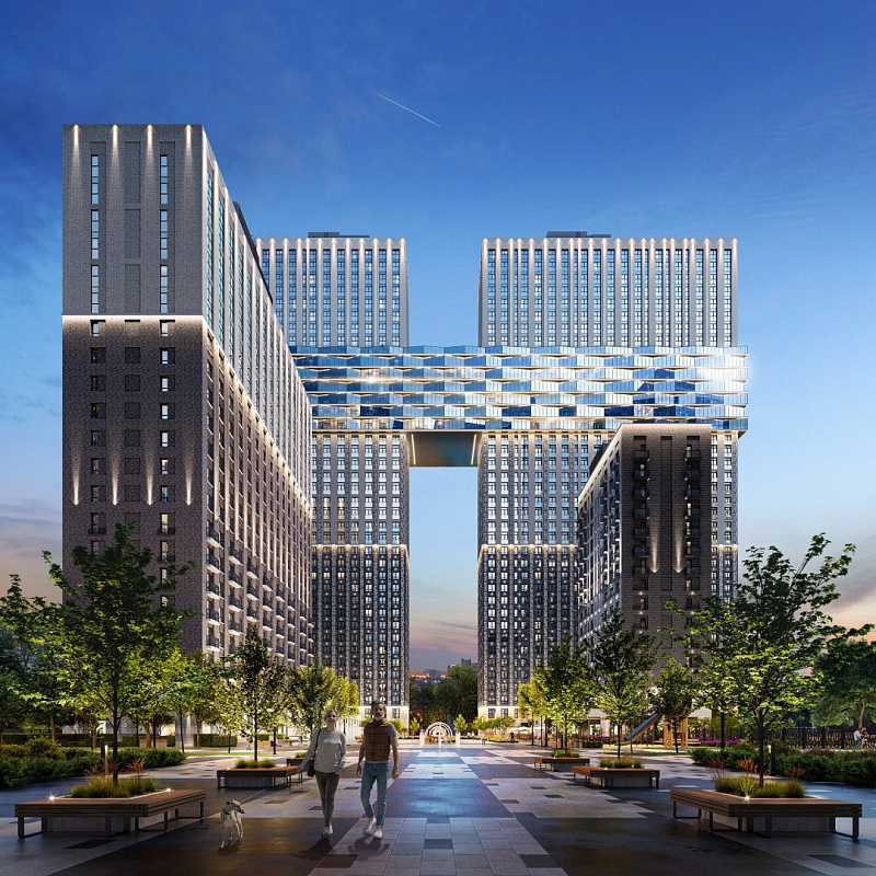 Небоскрёбы и среднеэтажные корпуса, огромный двор-парк, пруд и полноценная инфраструктура для детей и взрослых. По парку проходят велодорожки, аллеи и пешеходный бульвар с фонтаном и арт-объектом. Ярким центром притяжения всего района, станет корпус «Башни Лисицкого» с современной интерпретацией горизонтального небоскреба Эль Лисицкого. В этой части строения, напоминающей парящий мост, находится уникальная типология квартир со своим зимним садом и панорамным остеклением.