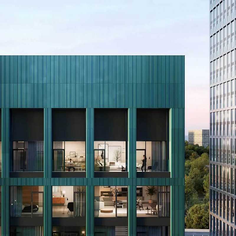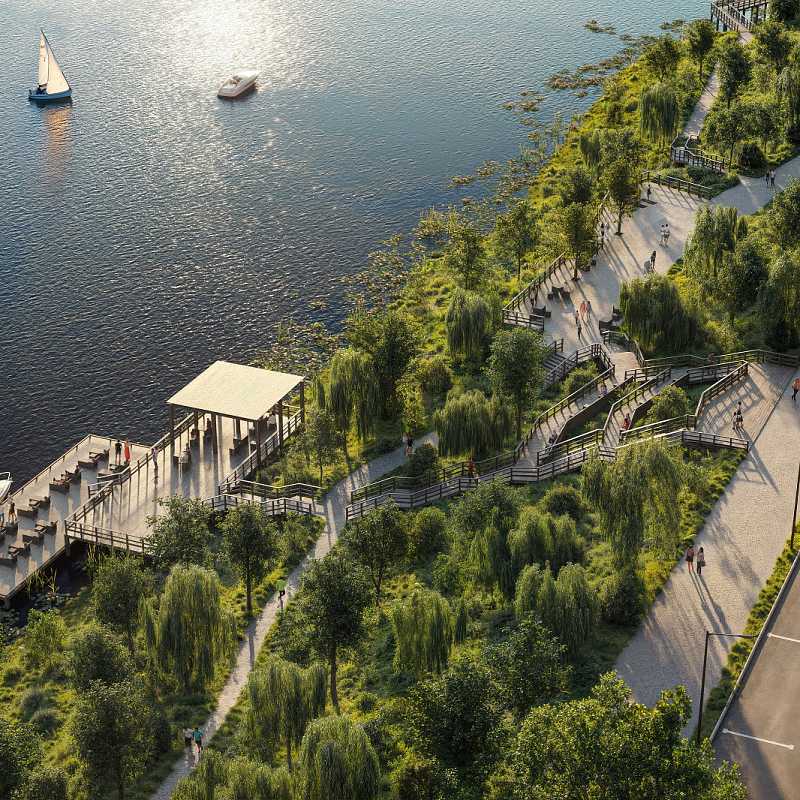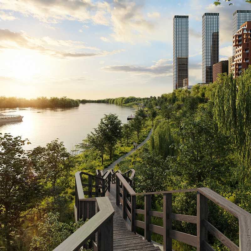 Прогулочные бульвары, уютные дворы и благоустроенная набережная формируют комфортную среду для жителей. На первых этажах зданий расположены магазины, кафе и сервисы, обеспечивающие удобство повседневной жизни. Зеленые зоны и крыши стилобатов организованы для отдыха и общения, а продуманные планировки обеспечивают потрясающие виды на воду и город.