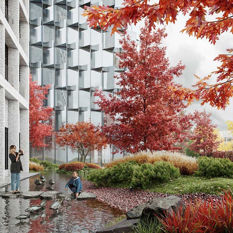 Также предусмотрен высокий уровень благоустройства прилегающей территории: там будут организованы детские игровые площадки, спортивные зоны, гостевая автостоянка и озеленение.
