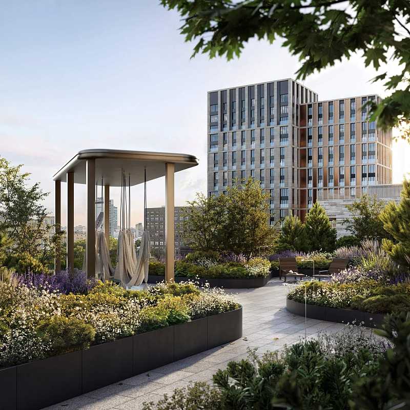На территории квартала будет реализовано насыщенное благоустройство с разнообразными функциональными зонами, такими как: прогулочные бульвары и тропинки, развивающие детские площадки для разных возрастов, сенсорный сад, спортивные пространства, столы для пинг-понга, релакс зоны с гамаками и шезлонгами, коворкинг-пространства. В жилых корпусах для резидентов комплекса будут открыты коворкинги, фитнес-комнаты и детские игровые комнаты, гостиные. На территории комплекса предусмотрено строительство двух детских садов, один из которых – с билингвальной программой обучения на 100 детей (в 1-й очереди). Первые этажи займут ритейл-помещения – кафе, магазины и др. В непосредственной близости расположены детские сады, школа, продовольственные магазины, кафе, рестораны, торговый центр, станция метро «Сокол».