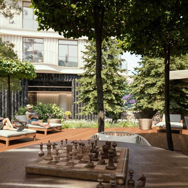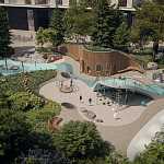 самый большой двор-парк в элитном классе в пределах Садового кольца площадью 1, 4 гектара с фонтаном, ручьём, детской площадкой, зонами активного и спокойного отдыха;