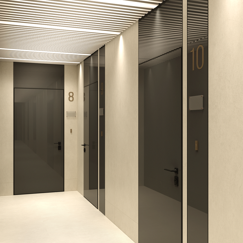 Закрытая территория бизнес-центра, комфортный подъезд на автомобиле к парадному входу, выдающееся лобби с приватной зоной для встреч, благоустроенный внутренний двор с лаундж-зонами, ресторан авторской кухни - всё выполнено с заботой о спокойствии резидентов бизнес-центра.