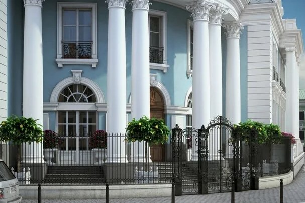 Villa Arbat - это трехэтажный особняк общей площадью 3, 290 кв.м . Здание спроектировано компанией A-Store Estates по проекту известного французского архитектора Доминика Эртенберже в стиле неоклассицизма.Парадный вход прячется за ажурным кованым забором. В 14-метровую ротонду с балконом и французскими окнами ведет широкая мраморная лестница. В обе стороны от ротонды расходятся два двухэтажных крыла с мансардным этажом.Внутренний дворик - классическое патио площадью 510 кв.м - позволяет отгородиться от шума в самом центре мегаполиса. Двор-патио с красивым фонтаном посередине вымощен натуральным камнем, стены увиты виноградом.