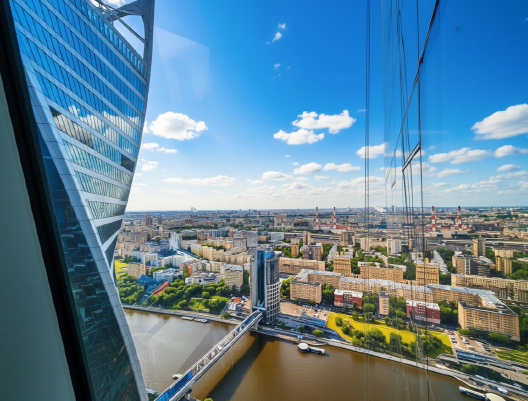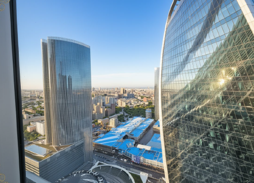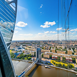 Видовой офис расположен на 47 этаже. Современная отделка, функциональная планировка с минимумом несущих конструкций, панорамное остекление, оборудованы кабинеты и переговорная зона.