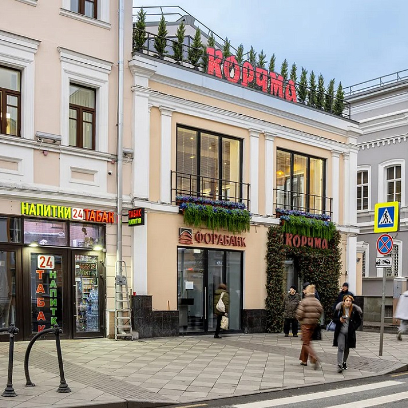 метро «Третьяковская». Отдельные входы с фасада и со двора, допустимый режим работы 24/7, электрическая мощность 160 кВт, лифт Schindler. Витрины — гармошки, летняя терраса на эксплуатируемой кровле.