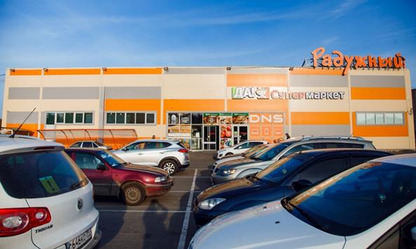 Вокруг крупный жилой массив, напротив остановка общественного транспорта, у торгового центра собственная парковка на более 50 автомобилей.