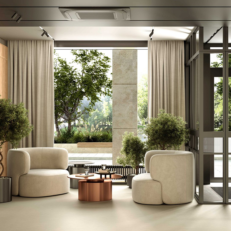Закрытая территория бизнес-центра, комфортный подъезд на автомобиле к парадному входу, выдающееся лобби с приватной зоной для встреч, благоустроенный внутренний двор с лаундж-зонами, ресторан авторской кухни - всё выполнено с заботой о спокойствии резидентов бизнес-центра.