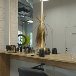 - Большие окна, светлое помещение.