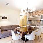 ЖК Clerkenwell House в Хамовниках. Уютный апартамент 78 м2 с ремонтом в современном стиле, оформлен в теплых тонах с использованием натуральных материалов. Планировкой предусмотрена просторная гостиная студийного типа, спальня, два санузла, гардеробная, холл. Апартаменты полностью готовы к проживанию. Установлена современная сантехника, бытовая техника Miele.