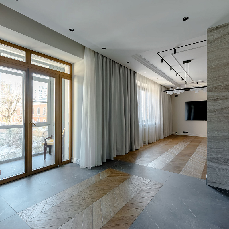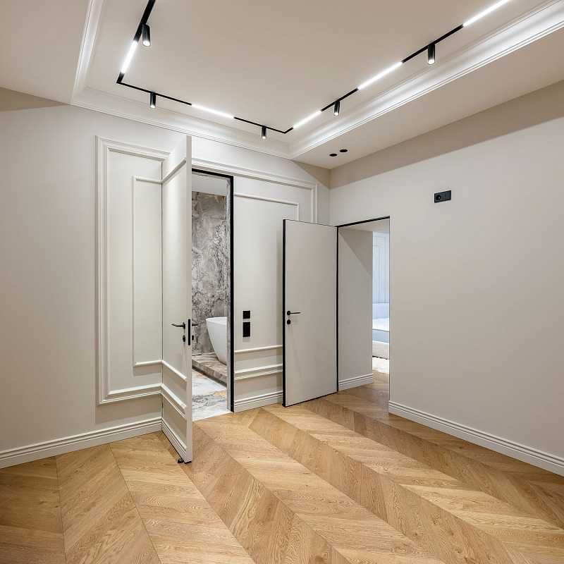 - Дизайнерская отделка в стиле современной классики: натуральный дубовый паркет, оконные рамы – лиственница, итальянский керамогранит (Imola; ABK Sensi;, La Faenza Oro; REX Ceramiche) стильные дорогие двери;