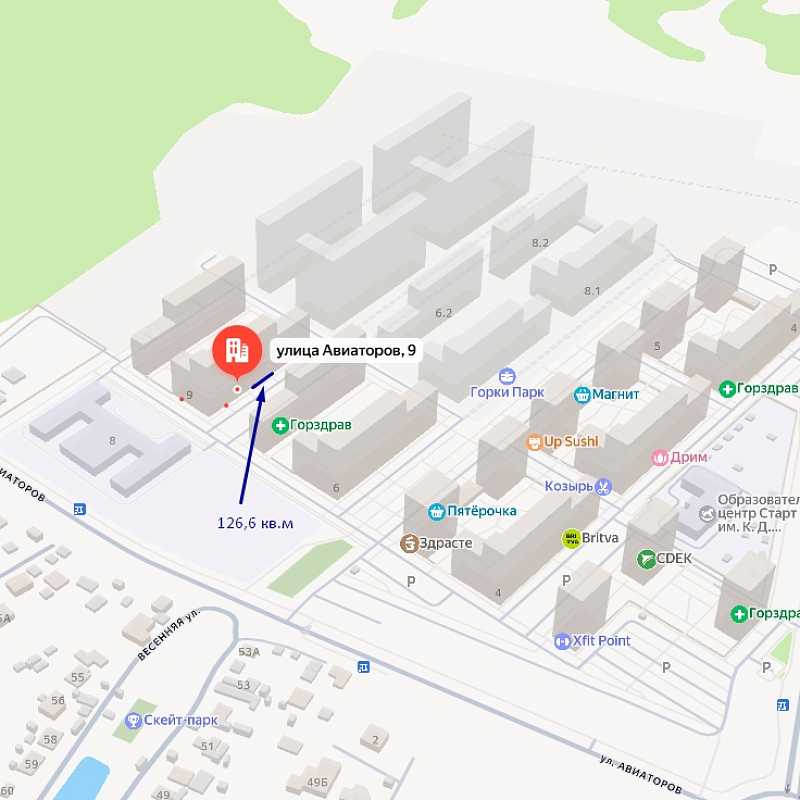 Продается помещение свободного назначения на 1 этаже 17 этажного жилого дома в ЖК Горки парк.Помещение в середине корпуса, внутри густого жилого массива, с выходом на внутренний проезд ЖК и парковку между домами.Дом введен в эксплуатацию.