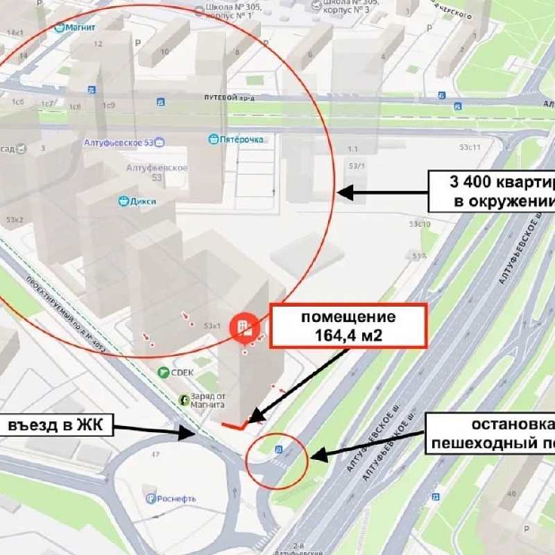 Продается торговое помещение площадью 164, 6 кв.м на 1 этаже 24 этажного жилого дома.20 мин.до центра Москвы на а/м, в пешей доступности метро Отрадное. Дегунино.Рядом остановка общественного транспорта, 2 пешеходных перехода.В ЖК 3400 квартир.Высокий пешеходный трафик.