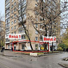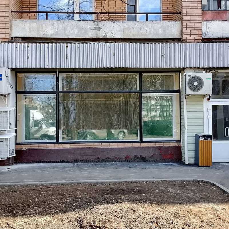 Высота потолков 5 м, витрины. Вывеска на фасаде.